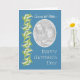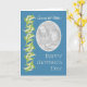 Uma placa de Dia de as mães bonito "Across the Miles" para personalizar com sua própria foto, assim como a mensagem dentro. O padrão dos lírios do Vale em fundo azul é da coleção Posh & Painterly, 'For the Love of Lily'.