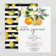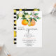 Ela encontrou seus principais convites de chá de panela de espreme com uma vibrante zistia limão-limão, cor d'água, ramificação de citrinos na frente e um padrão de limão com listras brancas e pretas no verso. Personalize facilmente com seus próprios detalhes.