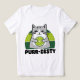 Um gato cinza adorável segurando uma fatia de limão verde com a frase "Purr-Zesty" para amantes de gatos e amantes de limões.