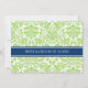 Cartões de convite de casamento em elegante e contemporâneo verde-claro-de-maçã, azul-marinho escuro, e padrão clássico e chic floral damask vintage. Personalize esses convites com seus detalhes de casamento. Disponível em produtos correspondentes para todas as suas necessidades de casamento.