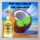 Poster with a lime, coconut and bottle of rum on the beach with instructions to put the lime in the coconut.