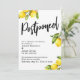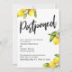 A distinção desta suíte se deve à fonte de script manual, audível e casual, usada para frases-chave acentuadas com limões! Exibido ao redor das bordas, coloquei uma matriz de aglomerados de limões de aquarela com verde conectado. Se você está na posição de precisar informar seus convidados de casamento que você teve que mudar seu grande encontro, aqui está uma opção ousada. Nesta peça, a letra de script escrita à mão foi usada para criar um gráfico simples que retrata a palavra "Adiado". Use os campos de modelo para adicionar seus detalhes pessoais e tornar este design moderno seu próprio. O fundo branco pode ser alterado para qualquer cor que você preferir. Todas as camadas foram adicionadas separadamente e deixadas desbloqueadas para oferecer a maior quantidade de controle de design. Por favor, responda a quaisquer solicitações especiais ou personalize a assistência. 105 //