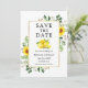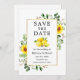 Modern Watercolor Eucalyptus Greenery Lemons Girassóis Dourado Quadro Salvar A Data Noivado Anúncio