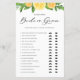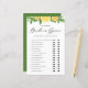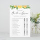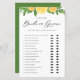 Adivinha quem? Noiva ou noiva? Adicione esta diversão e festiva que ele disse, ela disse cartão de jogo ao seu evento. Apresenta a terra aquosa de limões, laranjas e verde com uma escrita química. Personalize adicionando textos na parte traseira da placa. Este jogo da Noiva ou do Groom é perfeito para jogos de chá de panela e jogos de chá de casamento de verão.