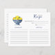 Limões de cor aquosa elegantes em cartão de receita azul e branco em tigela perfeito para chá de panela ou chá de fraldas com tema limão.