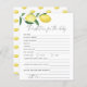 Cartão de chá de fraldas neutro com cor d'água em forma de limão, com aspecto neutro do gênero, com ilustração de um limoeiro com as frutas dos citrinos. Use as ferramentas de design para editar o texto, alterar a cor e o estilo da fonte para criar um design de convite exclusivo. Itens correspondentes disponíveis.