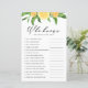 Quem conhece melhor a noiva? Adicione este cartão de jogo de chá de panela divertido e divertido ao seu evento. Apresenta limão de aquarela, laranjas, verde e hálito de bebê. Personalize este jogo de chás de panela cítricos adicionando suas próprias perguntas. Este jogo de chá de panela de limão é perfeito para chás de panela de verão.