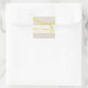Um gole e veja um adesivo com uma ilustração de um pote de maçã de limonada à direita. Ilustração de bunting amarelo no topo. O texto é amarelo. Procure convites de festas correspondentes na Paperie de Jill.