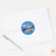 A pintura mostra um anjo surfando laranja brilhante em um oceano azul com um sol brilhante. A água do mar avança sobre a areia que rodeia as palavras "Limpar Cancer". Há uma concha rosa na praia. A pintura foi feita em acrílico e aspergida com brilho para textura e brilho. A imagem foi convertida em cartas que a equipe poderia usar para as luminárias. Faça adesivos decalcada personalizados para mostrar a consciência e o suporte do cancer!