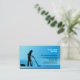 Neste cartão de visita dos Serviços de Limpeza, a silhueta de uma mulher usando um aspirador forma a imagem principal sobre um fundo azul de gradiente listrado. Personalize este cartão imediatamente com seu nome e detalhes.