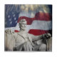 Foto da estátua de Abraham Lincoln no Memorial Lincoln em Washington DC com lindos fogos de artifício explosivos e a bandeira dos EUA no fundo. Imagem composta de excelente para celebrações de feriados patrióticos americanos.