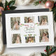 Este adorável cartões de natal festivo apresenta bordas finas elegantes com embelezamentos bonitos de coloração d'água, saudações personalizadas de "Feliz Natal" (a cor deste gráfico pode ser alterada usando o editor de design), campos de texto editáveis e modelo de colagem de seis fotos.