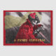 Foto antiga da era Eduardiana de 1900, renderizada digitalmente e colorida, com uma garota de casaco vermelho e chapéu com flor de poinsettia e véu ao volante, está nevando e ela está sorrindo e dirigindo um carro, com a mensagem dourada "Um Feliz Natal". Cartão de Natal perfeito para colocar um sorriso no seu rosto.