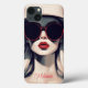 Linda mulher parisiense com um chapéu branco e óculos de sol vermelhos com abstrato moderno. Retrato elegante de moda. decoração de capa de telefone de retrato de beleza.