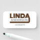 O nome Linda com sobrenome personalizado e cargo. As cores podem ser alteradas.