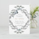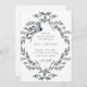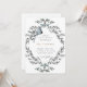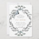 Linda e elegante, coroa de água botânica com folhagem e convite para casamento de flores. Esta adorável design apresenta uma caligrafia adorável e elementos azuis e cinzas empoeirados.
