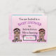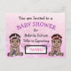Aqui estão os bonitinhos gêmeos filhotes de bebê atraídos pela mão. Personalize-os adicionando as informações do seu partido na área de personalização. Um fundo cor-de-rosa com um gêmeo bebê giro em cada esquina. Estes convites postais são uma forma muito barato de receber convites personalizados pré-feitos para duches de bebês. Essas meninas representam bebês afro-americanos.