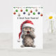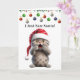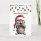 Compartilhe alguns Purrs-mas alegres neste feriado com este cartão de Natal de gato fofo! Este cartão de Natal apresenta um gato fofo vestindo um chapéu de Papai Noel com uma grinalda de Natal e enfeites de Natal acima de sua cabeça. O verso do cartão de Natal é engraçado! Perfeito para os amantes de gatos! Aproveite este cartão de Natal e tenha um Natalzinho felino!