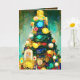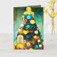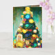 Este cartão de Natal é luxuoso em sua riqueza! Árvore realista com decorações de fita grossa e cores ricas. Desenho em aquarela estilo Gustav Klimt feito por mim.