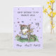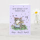 Um cartão de aniversário engraçado e personalizável para gatos Virgem, adicionando um toque divertido às ilustrações usuais do signo de Virgem, além de ter a frente e o interior personalizáveis. Uma adorável gata tabby cinza chamada Maiden segura um feixe de milho em um prado de flores silvestres, com um fundo lilás e o texto 'Virgo' e as datas escritas abaixo da ilustração, e a mensagem pode ser personalizada ou removida. A imagem foi originalmente pintada durante o inverno de 2023, inspirada nos muitos gatos que eu conheci e inicialmente criada para fazer parte de um calendário - eu queria trazer um momento de alegria e humor para o dia do usuário. Havia tanto potencial nas ilustrações que eu sabia que elas precisavam ter uma vida além do calendário! Eu criei o desenho usando uma caneta de ponta de metal tradicional e tinta nanquim, com todos os respingos e linhas onduladas que isso produz, o que dá aos meus desenhos um estilo animado e divertido, e eu espero