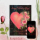 Lindo cartão de dia dos namorados em aquarela que você pode dar à sua namorada, esposa ou amante. Ele apresenta um coração rosa com lindas flores vermelho-rosadas e o verso do cartão tem alguns corações. O fundo é preto gradiente com tons de verde e rosa. Você pode alterar/atualizar o texto da parte inferior da frente e o nome e o texto dentro do cartão. Você pode imprimi-lo ou baixá-lo e enviá-lo eletronicamente. Este cartão é perfeito para pessoas apaixonadas. Feliz Dia dos Namorados!