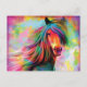 Lindo Cartão Postal de Cavalo Arco-íris em Aquarel