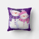 Decore sua casa nesta época de festas com esta almofada quadrada festiva. Com uma adorável ilustração de um casal de bonecos de neve com um padrão de flocos de neve brancos sobre um fundo roxo, certamente dará à sua casa um clima festivo.