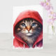 Lindo Gato com Capuz Vermelho Aquarela Cartão de B
