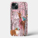 Lindos animais da floresta invernal rosa raposa e cervo com aves na floresta.