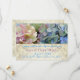 Cartões florais de salvar a data do casamento que apresentam lindas flores de hortênsias e têm um visual vintage. Pétalas de flores azul-esverdeadas e rosa-cremosas preenchem a metade superior dos anúncios horizontais. Um fundo sepia vintage contém texto em azul e cor de mauve. Uma caligrafia manuscrita é usada para os nomes do casal, junto com a data e local do casamento. A frase "Save Our Date" está em fonte impressa azul rosa e pode ser alterada para "save the date" conforme desejado. O verso também é um floral em tom sepia para combinar com a frente. Mostrado em papel de cor ecru aprimorado, que pode ser alterado.