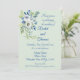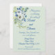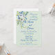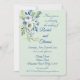 Lindos convites para casamento florais, azuis e verdes, uma espiral de florais azuis em um fundo verde da casa da moeda e convites facilmente personalizados para um adorável convite para o casamento.