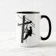 Esta é uma caneca divertida para o Dia de Apreciação de Lineman, Dia de os pais, um presente de aniversário, Natal, etc., o homem de linhagem que conheces. Do outro lado, você pode personalizar isso com o nome dele. Estou mostrando isso em uma caneca aparada, mas você pode comprar isso em qualquer outra cor que quiser. Você também pode comprar isso em qualquer outro item de bebendo oferecido... ou seja, caneca de viagem para que ele possa mantê-lo no carro e usá-lo em uma pausa. Desenhado por Sheila Cicchi, Brownielocks.com. Todos os Direitos Reservados.