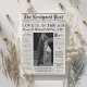 Animações ao Amor - este convite clássico ao estilo clássico do "Posto Novo", ao estilo do jornal, ao estilo do jornal, com 3 fotos a preto e branco, manchetes de revelação e histórias temáticas de colunas editoriais e Love Is In The Air, apresenta uma linha do dia do casamento especial ou itinerário com ícones de casamento infográficos e bonitos, citação de casal feliz, nossa história de proposta, site de casamento e instruções de vp digital. Personalize o texto e substitua-o pelo seu próprio, carregue facilmente as suas fotografias e até edite a colocação dos componentes do design ou adicione o seu código QR ao verso, clicando no botão azul "Editar utilizando a ferramenta design" na parte inferior da janela "Personalizar"! Navegue até a guia "camadas" na coluna esquerda da tela de edição, selecione a camada frontal ou traseira, clique no elemento que você gostaria de alterar e torne-a sua própria lista de opções de design personalizado e as perguntas são sempre bem-vindas - clique no botão "mensagem" ou envie um email para figandlilyco@gmail.com. As fotos são apenas para fins de espaço reservado e devem ser substituídas. A design é carinhosamente criada pela Fig e Lily Studios, e o crédito fotográfico do noivado da nossa filha vai para o IG: @laurenmargaretfotografia