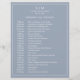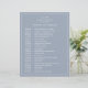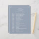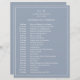 Linha do tempo simples de casamento com um design moderno, mas elegante, com seu monograma de duas letras no topo e seus detalhes cercados por uma fina fronteira. Todo o texto está branco sobre um fundo azul empoeirado e pode ser alterado para qualquer cor desejada clicando no botão "personalizar". Um design chic e na moda que é excelente para um casal minimalista.