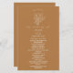 Ilustração de arte em linha do buquê floral com fundo colorido dourado e texto branco.