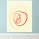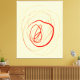 Uma linha vermelha orgânica de diferentes espessuras faz um caminho circular e concêntrico nesta canvas esbranquiçada.
