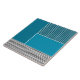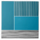 Este azulejo tem uma design geométrica de um retângulo alto grande no canto superior esquerdo, faixas mais escuras no canto superior direito, um retângulo menor mais claro abaixo das listras e linhas pretas na parte inferior. Se você gosta do design, mas prefere cores diferentes, me mande mensagem.