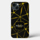 Monograma Personalize com seu nome e inicial personalizados. Triângulos negros geométricos Elegantes com linhas douradas. preto, ouro, malha, triângulo, triângulos, geometria, padrão, legal, linhas, luz, brilho, moderno