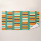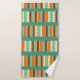 Este conjunto de toalhas tem um pano de lavagem esbranquiçado, uma toalha de mão de mar, e uma toalha de banho com um design moderno do século médio de linhas horizontais feitas de faixas verticais em seafoam, esbranquiçadas, duas laranjas e marrom.