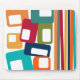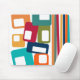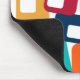 Este mouse pad tem um médio de linhas e retângulos modernos do século design em tons retrorados de laranja, ouro, amora, chalé, verde, azul, turquesa e verde.