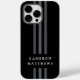 Capas de iphone preta elegante com três linhas de cinza escura correndo de cima para baixo e seu nome através.
