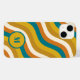 Pop ondulada Tiras de Teal de Ochre, Padrão Retroativo. Vintage elegante, moderna e moderna tradição, design de faixa diagonal estética em legal cores quentes dos anos 70 e tons azuis e amarelos. O inicial pode ser personalizado/personalizado. Por Kierkegaard Design Studio.