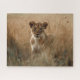 Lion Cub Pionando Através Do Quebra-cabeça De Vidr