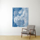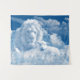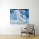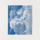 Leão e cordeiro no céu com tapeçaria de nuvens.