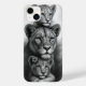 This tender phone case showcases a calm lioness with two cubs — one adorned with a flower behind the ear. The grayscale artwork captures maternal strength, individuality, and the quiet beauty of protection and love.