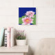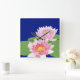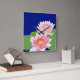 Um relógio de parede quadrado, com dois lírios de água cor-de-rosa sobre fundo azul profundo. O lírio-d'água é a flor do Mês de Nascimento de julho e há espaço para adicionar suas iniciais ou nome, se desejar.