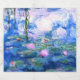 Um rótulo de lírios de água cor-de-rosa monet com lindos lírios de água rosa flutuando em um lago azul calmo com almofadas de lírios. Um presente de Monet excelente para fãs do impressionismo e da arte francesa. Inimpressionismo sereno na natureza com lindas flores e paisagem de lagoas cênicas.