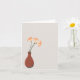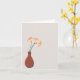 Cartão de nota com a minha pintura digital original de guache na frente. A pintura é uma vida morta ingênua de três lírios laranja num vaso vermelho de tijolo em forma de bolbo. Coloquei a imagem em direção ao canto inferior esquerdo da placa. O fundo é bege com uma textura de canvas. Esta placa totalmente personalizável é dentro vazio para você preencher com seus próprios pensamentos. Uma maneira simples e doce de manter contato.