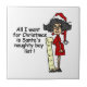 T-shirts, canecas, cartões, autocolantes, botões, bolsas, chaveiros, ornamentos engraçados, e mais certeza de fazer alguém rir é uma fêmea de chapéu de Pai Natal e vestido vermelho com uma longa lista dizendo "Tudo o que eu quero para o Natal é uma lista de crianças travessas!".