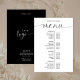 Design simples, mas elegante, de menus de negócios em preto e branco, com letra de estilo de caligrafia que lê 'menu'. Adicione seus produtos ou serviços e preços para criar cartões de lista de preços profissionais para seu salão, butique, padaria e muito mais! A parte traseira deste menu de serviços minimalistas inclui espaço para o seu logotipo, detalhes de contato e texto personalizado.